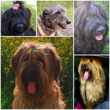 Wir leben also, stand Juli 2025, mit 3 Briards und 1 Deerhound zusammen.
